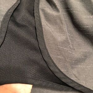 Elastic waist with drawstring, 14 inches across the waist 11 1/2 inch rise 3 inch inseam