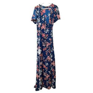 Lulus Divine Days Wrap Maxi Dress Womens S Floral Print Navy Blue Adjustable