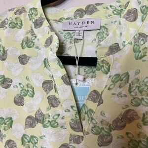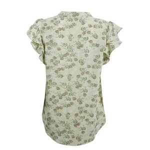 Hayden Ruffled Split Neck Green Floral Women's Top Size S
