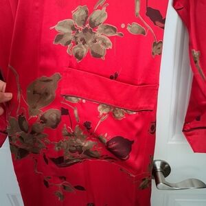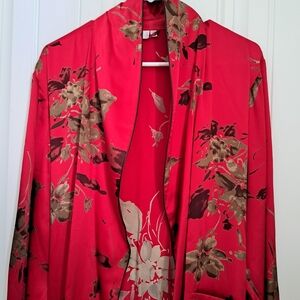 NK ELLE 100% SILK red floral long robe shawl collar elegant lingerie oversize Sm