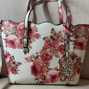 Aldo Elegant women's tote bag featuring a beautiful floral design in white and pink. Perfect for adding a touch of sophistication to any outfit.