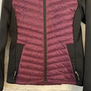 Excellent condition! Like new! 32 Degree Heat burgundy and black zip up jacket with zipper pockets! Size S! Pit to pit is approx 19 inches so would probably fit M!