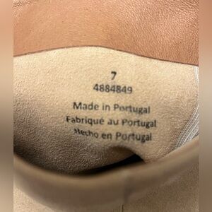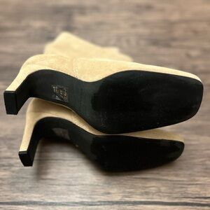 Stylish beige suede boots with block heel. Runs half size small.