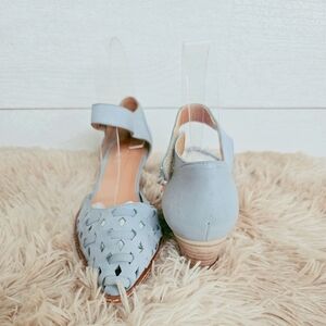 Chic loafers with stylish cutouts. Sky blue leather offers a modern touch. Perfect for casual outings.