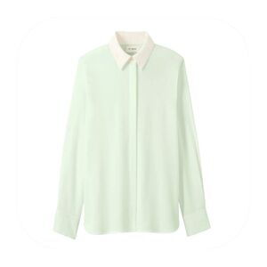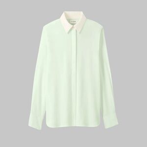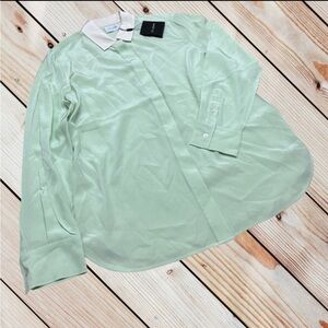 NWT St. John L mint w/ cream contrast collar silk button down blouse
