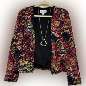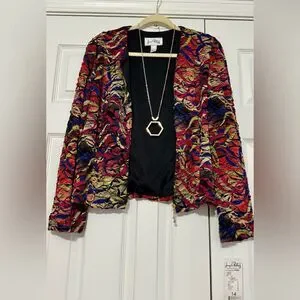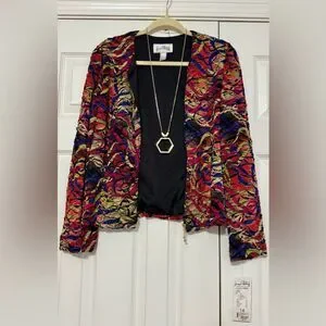 New with tags! Beautiful Joseph Ribkoff jacket! Size 14, (fits smaller). Necklace NOT included. Material shown in picture. Cute & versatile piece. A closet staple. Very comfy. Adorable. A staple piece to add to your collection. A MUST HAVE!!