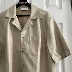 ASOS Design Faux Leather Short Sleeve Boxy Shirt - Beige / Stone