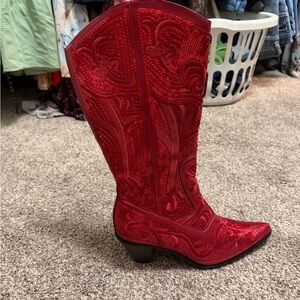 Step out in style with these elegant red embroidered women's boots. Perfect for adding a bold touch to any outfit.