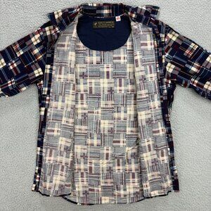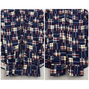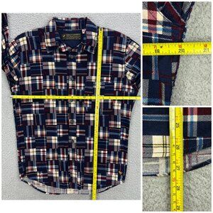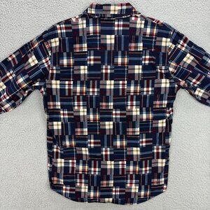 Uniqlo Shirt Men Extra Small XS Navy Blue Plaid Flannel Patchwork Button Up Polo