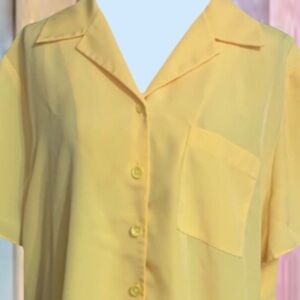 Susan Graver Yellow Button Down V-neck Short Sleeve Top