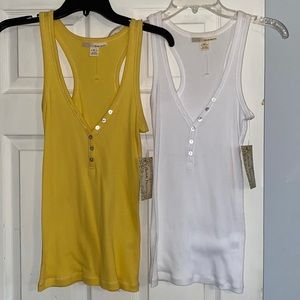 Derek Heart Yellow White Bundle V-neck Half Button Front Tank Tops NWT
