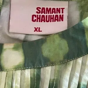 Anthropologie Samant Chauhan Emilia Ruffled Green & White Tie Dye Boho XL