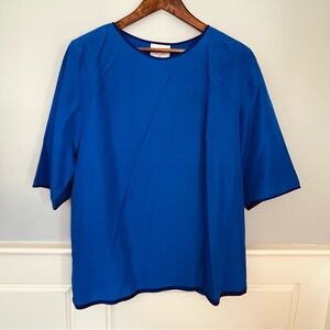 Condition: Excellent vintage, no signficant flaws found. Blouse has slubs designed to resemble silk dupioni so it is textured. 95% poly/5 other fibers. Scarf is 95% silk. Cover photo is AI model for style inspiration only. Please refer to actual garment photos before purchasing.