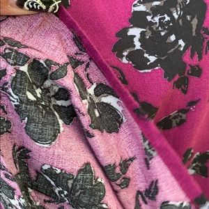 ~boat neckline~3/4 length sleeves~cute bottom of the top~hidden back zipper & the eye hook closure~black floral print throughout ~