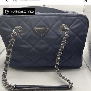 Prada Blue Quilted Shoulder Bag with Silver Chain