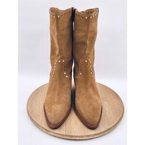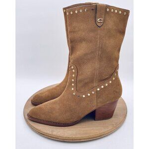 Coach Boots Womens 10 Tan Suede Pull On Studded Mid Calf Cowboy Western