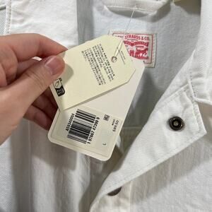 Stylish Levi's jumpsuit. Short sleeves. Button-up front. Chest pocket detail.