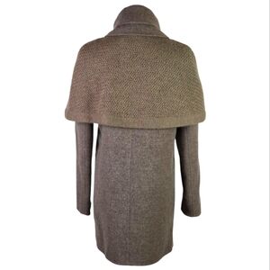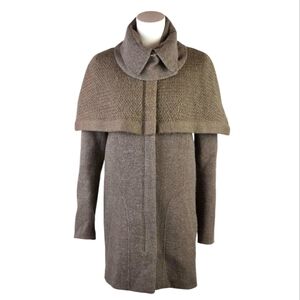 Hanii Y Wool Blend Cape Coat Brown Knit Overlay Funnel Collar Size 38 Small