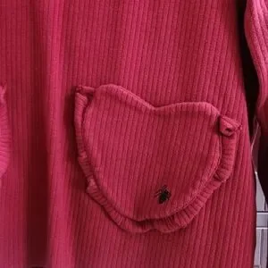 Size medium The Loveweb Top from Kina and Tam, gently used and only worn a few times. Top is ribbed, stretchy, has a mock turtleneck and ruffled heart-shaped pockets with bug embroidery. Fabric is stretchy and thick :)