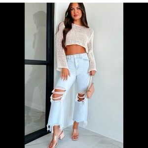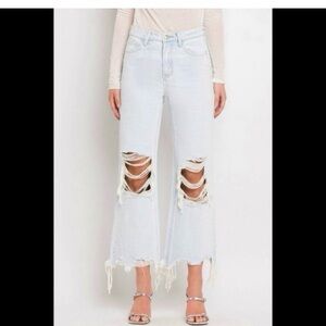 Light wash ripped crop flare jeans