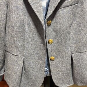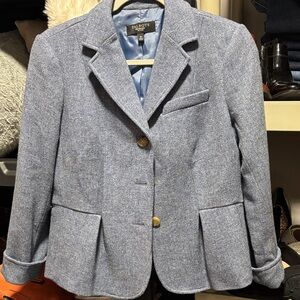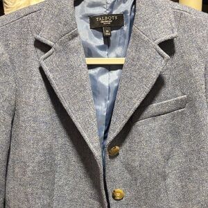 Chic heathered blue blazer by Talbots. Features classic lapel and button closure. Ideal for professional settings.