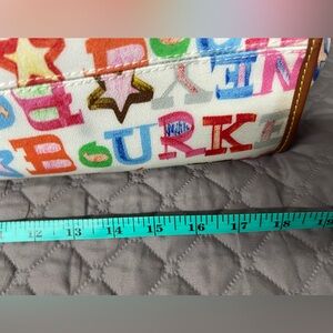 Vibrant and stylish, this Dooney & Bourke tote bag features a playful multicolor design. Perfect for adding a pop of color to any outfit.