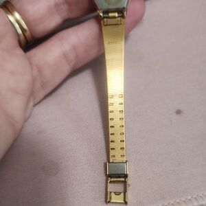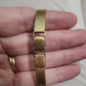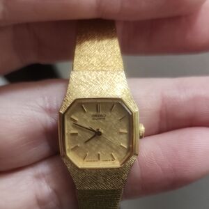 Vintage Seiko watch with a gold-tone finish. Features a textured band and classic design. Safety chain is missing but could be easily added. New battery will be placed before shipped.