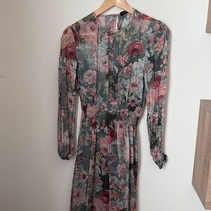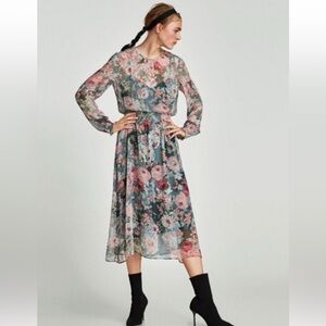Soft, sheer, Zara printed floral midi Soft green color with rose floral print.
