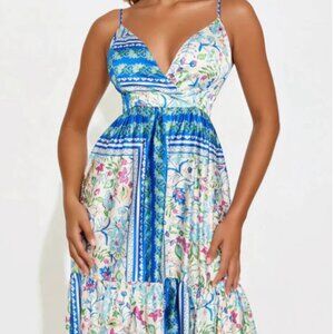 Fashion Nova Shelly Dress, Size M, New With Tags, Never Worn,Long Printed Maxi Dress, Adjustable Spaghetti Straps, V Neckline