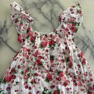 LoveShackFancy Girls Floral Strawberry Print Dress 10