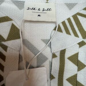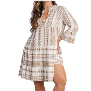 Silk & Sand Khaki White Geometric Print Flouncy Boho Dress or Coverup Size LP