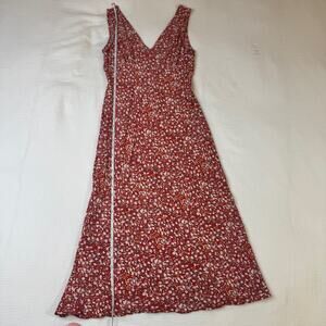 Rails Audrina Red White Ditsy Floral Midi Dress Women's Small V-Neck Fit & Flare Cottage Romantic Valentine's Day Garden