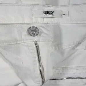 Stylish white denim jeans by Hudson. Features classic design with zipper detail. Perfect for any occasion.