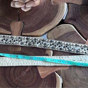 This fun, funky, silver, seashell, and jewel beaded belt can make any outfit hip and fun! At 43 inches long it gives plenty of room for lots of different variations!