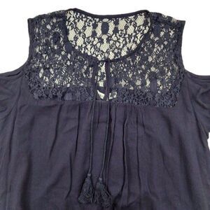 Heartloom Mini Dress Womens Large Navy Cold Shoulder Lined Bohemian Langenlook