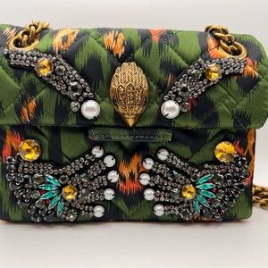 Kurt Geiger Embellished Green and Gold Chain Women Bag