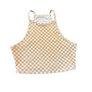 Aeropostale, Crop Top, Tank Top, Checkered, Checkerboard, Racerback, Sleeveless, Summer, Casual, Beige, White, Womens, Party, Vacation, Comfortable