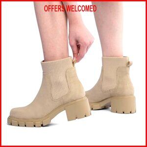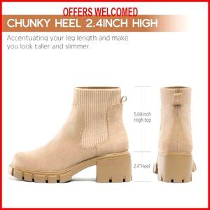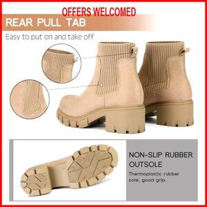 Women's Chelsea Boots Chunky Heel Lug Sole Elastic Ankle Booties Size 6-11