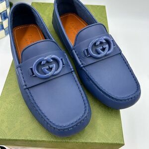 Men’s Gucci interlocking GG Leather driver loafers size 6 fits 7US made Italy