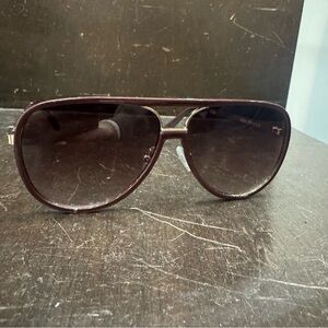 Stylish Quay aviator sunglasses in a purple burgundy color. Perfect for a chic look. A lot of wear with chipping in the hardware under the lenses.