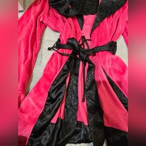 Vintage Betsy Johnson Intimates Hot Pink Black Robe Velvet Med L Satin Leopard