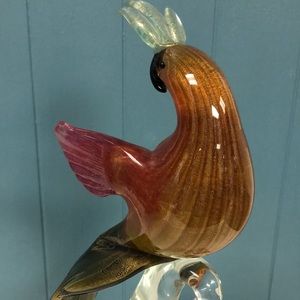 Vintage MCM c1950s Alfredo Barbini Murano Glass Cockatoo Parrot Bird Italy Art