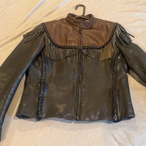Vintage 2 tone brown/black fringe authentic Willy G Harley Davidson jacket in flawless condition. Size small 36 inch chest. Rare find. Leather is in perfect condition