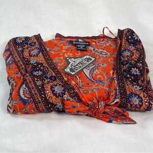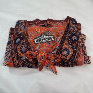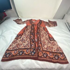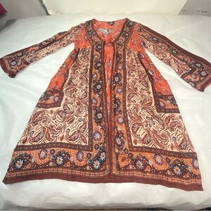 NEW Pristine Condition. Great mix of patterns and colors, giving off that bohemian vibe. This open front duster features an optional front tie which can be worn open or closed. such a pretty and fun piece.100% Rayon
