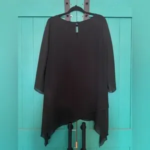Joseph Ribkoff Asymmetrical Black w/ Metallic Floral Embroidery Top, Women's Size: 10