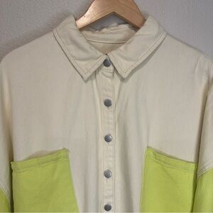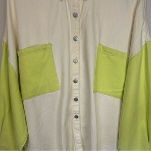 Stylish lime and white colorblock jacket. Perfect for casual outings.