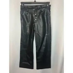 Keywords: ZARA, women's pants, cropped, black, faux leather, high-waist, straight leg, casual, pre-owned, size 10