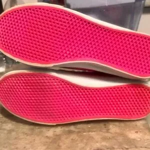 Bright neon pink high-tops from Vans. Eye-catching and stylish. Perfect for a bold look.