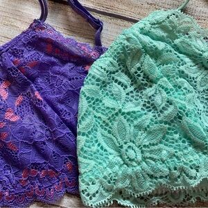 Bundle of two lace bralettes mint green and purple / pink.