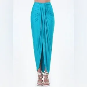 Stunning teal maxi skirt with a draped design. Perfect for special occasions.